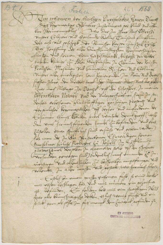 Tallinna Linnaarhiivis on hoiul 1568. aastal koostatud ülevaade pastor Bartolomeus Frölichi pärandist, mis on olnud nummerdatud tünnides ja kastides. Selle dokumendi lõpus on luik – vara üleskirjutanud notari Pauli Syferti märk. Tekst märgil Exitus acta probat on juba Ovidiuselt tuntud tsitaat, mida on tõlgitud: eesmärk pühitseb abinõu.
